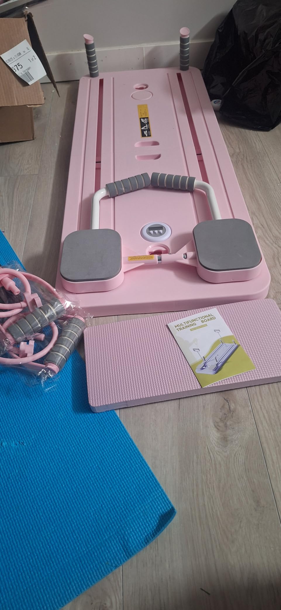 - Attach the resistance bans or push-up attachments.
